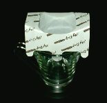 使い捨てペーパードリップでのコーヒーの入れ方を説明します。 まずは、上記の写真のように組み立て、コーヒーカップに乗せます。