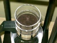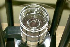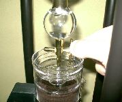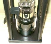 コーヒー粉のセットが終わったら、次は水です。 なるべく、汲み立てで新鮮な水を使いましょう。 ウォータードリップでは水の味によって、コーヒーの味がかなりの部分決まってしまいます。 水は、ボウルの中に適量を入れ、ゴムのパッキングがついた蓋を閉めます。 ゴムパッキングの中から出ている管でも、水を少量ずつ落とす制御をしています。