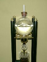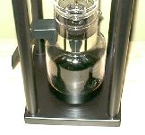 コーヒー粉のセットが終わったら、次は水です。 なるべく、汲み立てで新鮮な水を使いましょう。 ウォータードリップでは水の味によって、コーヒーの味がかなりの部分決まってしまいます。 水は、ボウルの中に適量を入れ、ゴムのパッキングがついた蓋を閉めます。 ゴムパッキングの中から出ている管でも、水を少量ずつ落とす制御をしています。